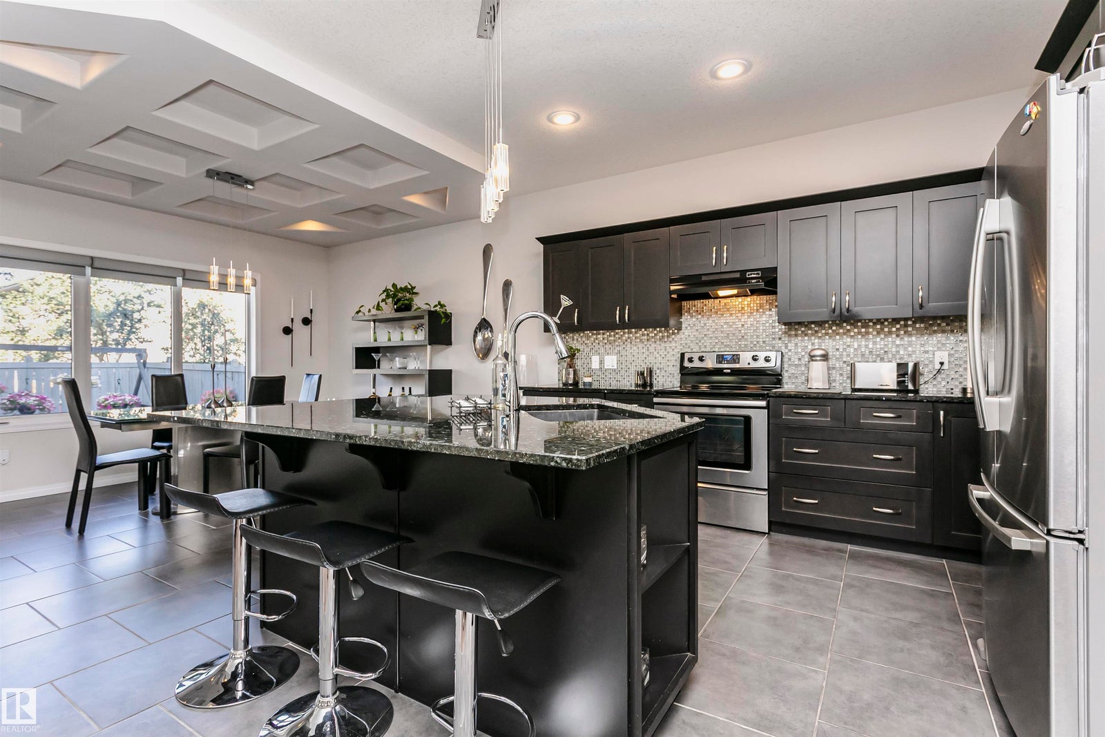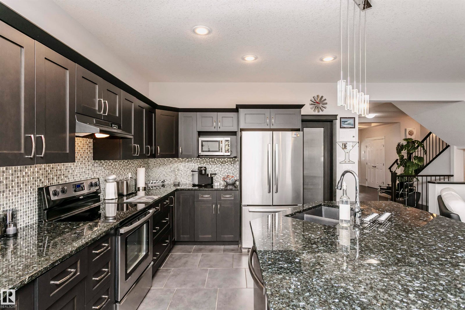 This Montorio masterpiece exudes elegance and sophistication with its exquisite details and superior craftsmanship. You're greeted by the upgraded trim and 9 ft ceilings, setting a ton of luxury and grandeur. The spacious master bedroom, adorned with vaulted ceilings and a lavish ensuite, provides a serene retreat for relaxation. Bedrooms 2 and 3 offer lots of space, walk-in closets, and an ensuite bathroom with double sinks, ensuring convenience for all. The open-concept floor plan seamlessly connects the living room, featuring a cozy gas fireplace and built-in shelving, to the gourmet kitchen with abundant storage and a walk-in pantry. The entrance and dining room have square coffered ceilings. Step outside to the landscaped backyard oasis, complete with a deck, stone patio, and a charming kids' playhouse. The triple garage, with its hidden surprise of a double tandem configuration, boasts hot and cold taps. With the unfinished basement with bathroom plumbing awaiting your personal touch.
